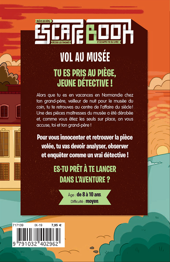 En vacances en Normandie, tu vas passer un peu de temps chez ton grand-père, veilleur de nuit pour le musée du coin. Mais voilà qu’une des pièces maîtresses du musée a été dérobée et, étant donné que personne n’a rien vu, on accuse ton grand-père ! Pour l’innocenter, tu vas devoir analyser, observer, et enquêter, jeune Sherlock Holmes, et retrouver la pièce volée, sans oublier le coupable !