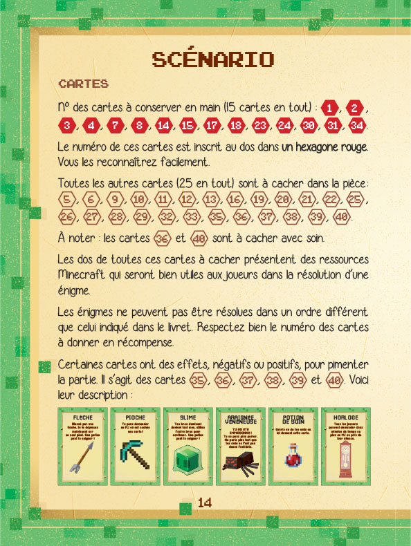 Conception des énigmes, du chaînage entre les énigmes, livret de règle, solution et scénario dans le thème du jeu Minecraft en collaboration avec Nicolas Lubac. C'était ma 3ème box dans cet univers, et ma 6ème gamme enfant, donc il a fallu se renouveler ! ;-)