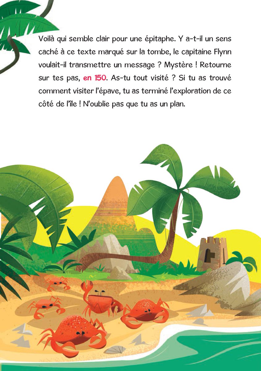 Écriture, carte de l'île, énigmes et brief des 30 illustrations couleurs réalisées magnifiquement par Marcel Pixel.