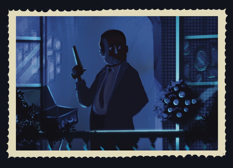 Stéphane : «J’avais à la fois envie de retravailler avec Lucie, sur une échelle un peu plus grande que les pièces du manoir d’Écrivain mortel. Alexis avait proposé d’utiliser un poster et on avait trouvé le concept d’un aller-retour entre des photos et un lieu intéressante. Voilà le résultat.»