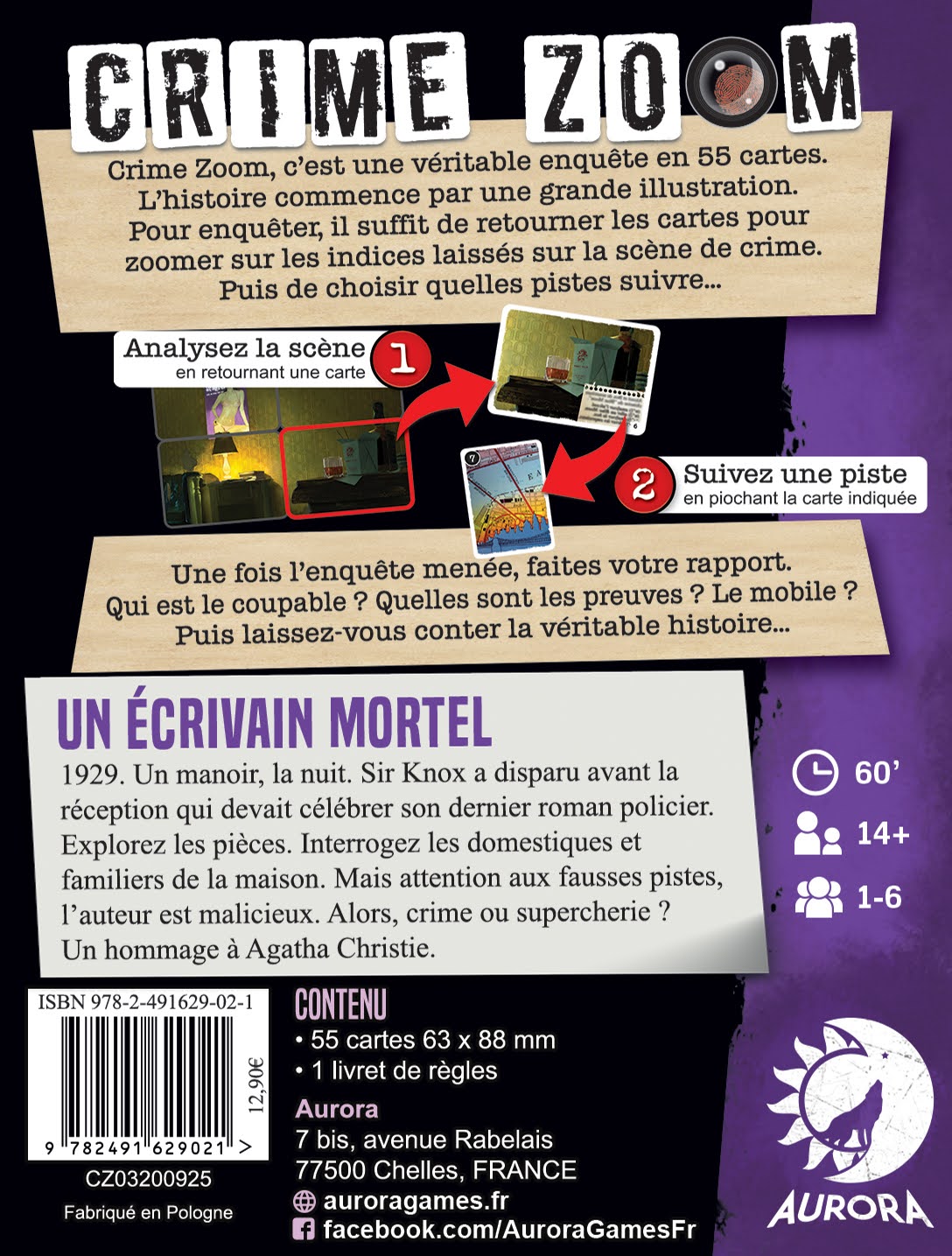 Un écrivain mortel Un manoir, la nuit en 1929. Sir Knox a disparu avant la réception qui devait célébrer son dernier roman policier. Explorez les pièces. Interrogez les domestiques et familiers de la maison. Mais attention aux fausses pistes, l’auteur est malicieux. Alors, crime ou supercherie ? Un hommage à Agatha Christie.